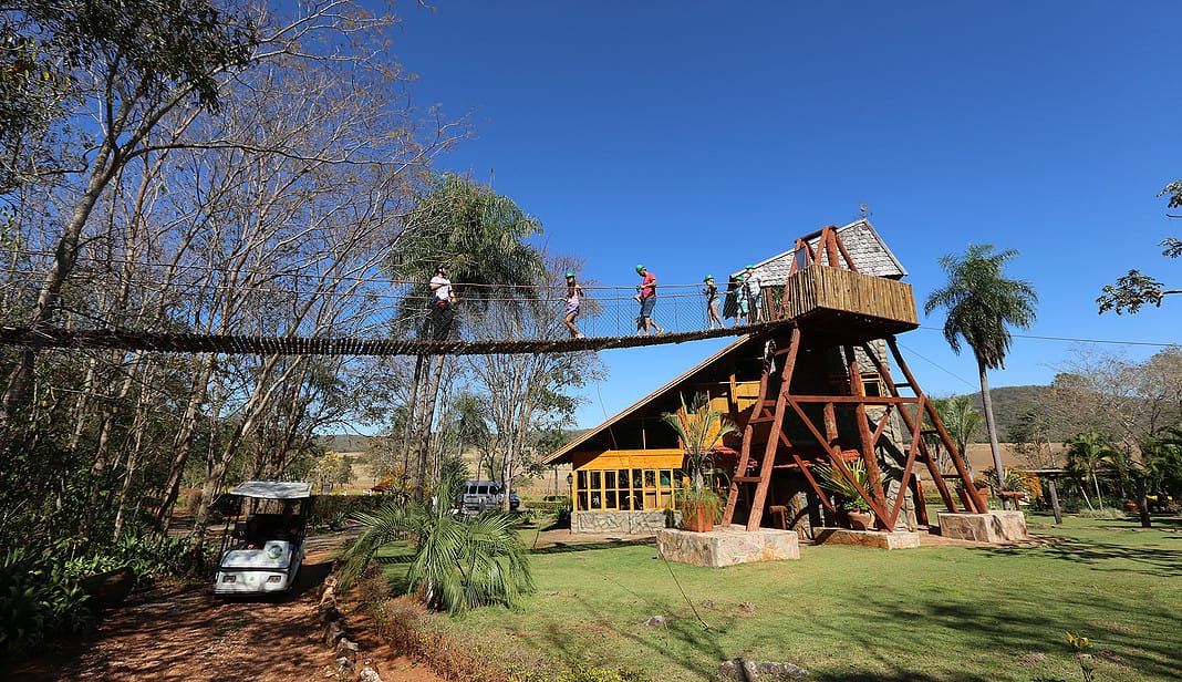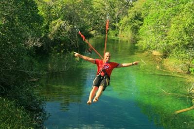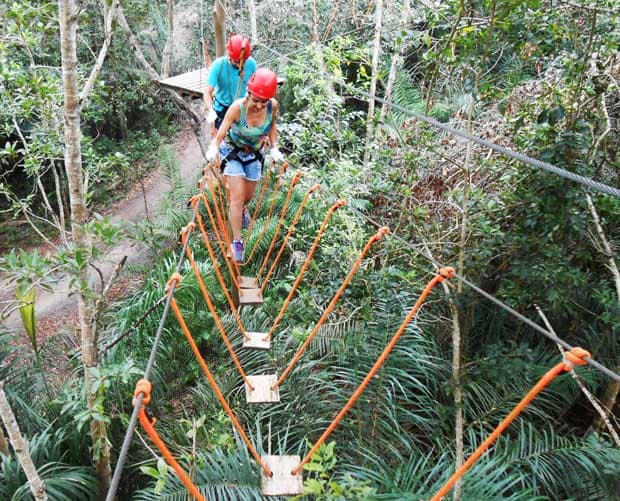 O passeio tem um percurso de 300 metros em trilhas suspensas, com altura que varia de 4 a 15 metros do solo. Ao todo são 18 estações diferentes com dificuldades gradativas e duas tirolesas, uma de 55 metros e outra de 60 metros. Uma delas cai direto no Rio Formoso. Antes do início do passeio há um breve treinamento para familiarizar o visitante com os equipamentos e com o percurso. Esse passeio também pode ser realizado a noite, no mesmo percurso. Nesse caso, o circuito é iluminado de forma branda para a orientação do grupo.