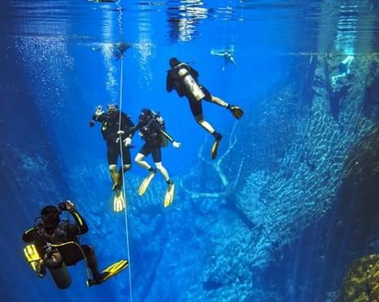 É possível mergulhar até aproximadamente 18 metros de profundidade em meio a um cenário fantástico de formações calcárias. São dezenas de cones com mais de 12 metros de altura, alguns chegando a 19,5 metros. Espécies de lambaris que vivem na caverna também poderão ser observadas.